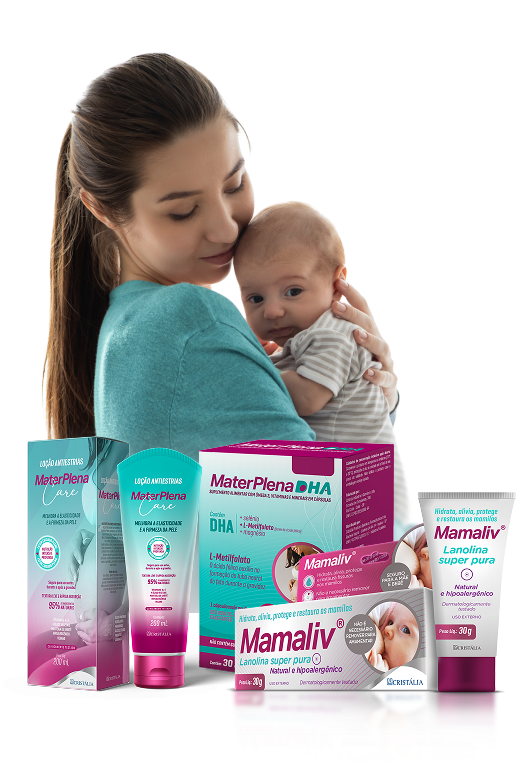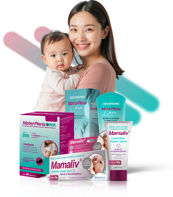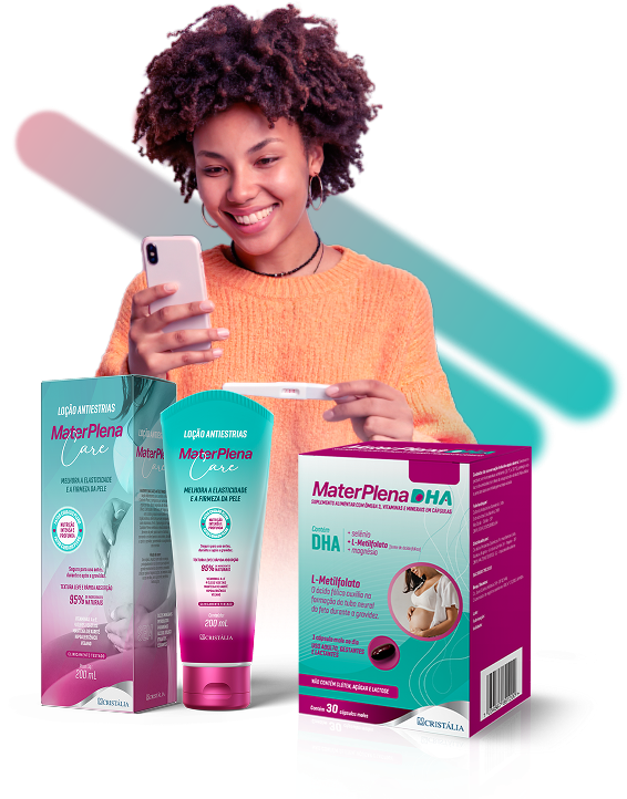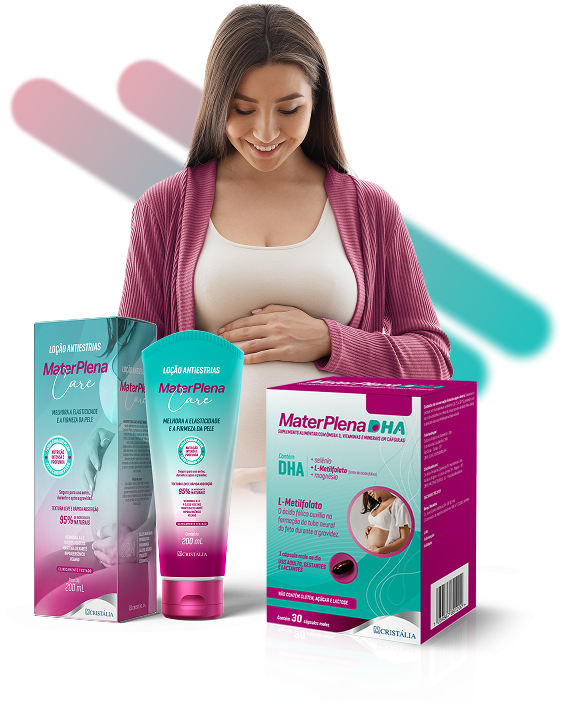 MaterPlena Care foi dermatologicamente testado em gestantes. Além disso, MaterPlena DHA é uma nutrição composta por vitaminas, minerais e fonte de ômega 3 que atende às necessidades nutricionais desde o início da gravidez até lactação. 2-4